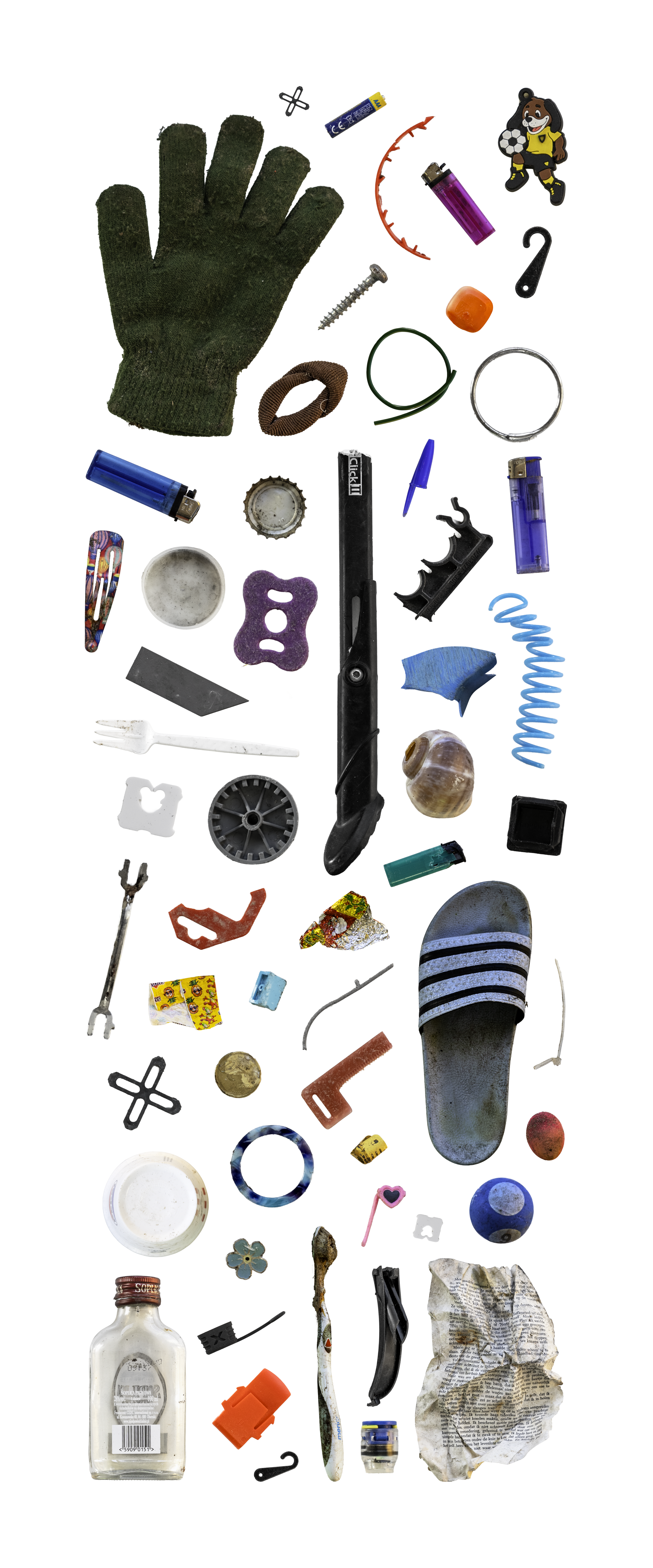 The collected waste was carefully arranged and photographed in my studio using a professional camera. The final image is printed and given to the participants of the clean-up action as a tangible reminder of their collective effort, transforming everyday litter into a shared artwork.